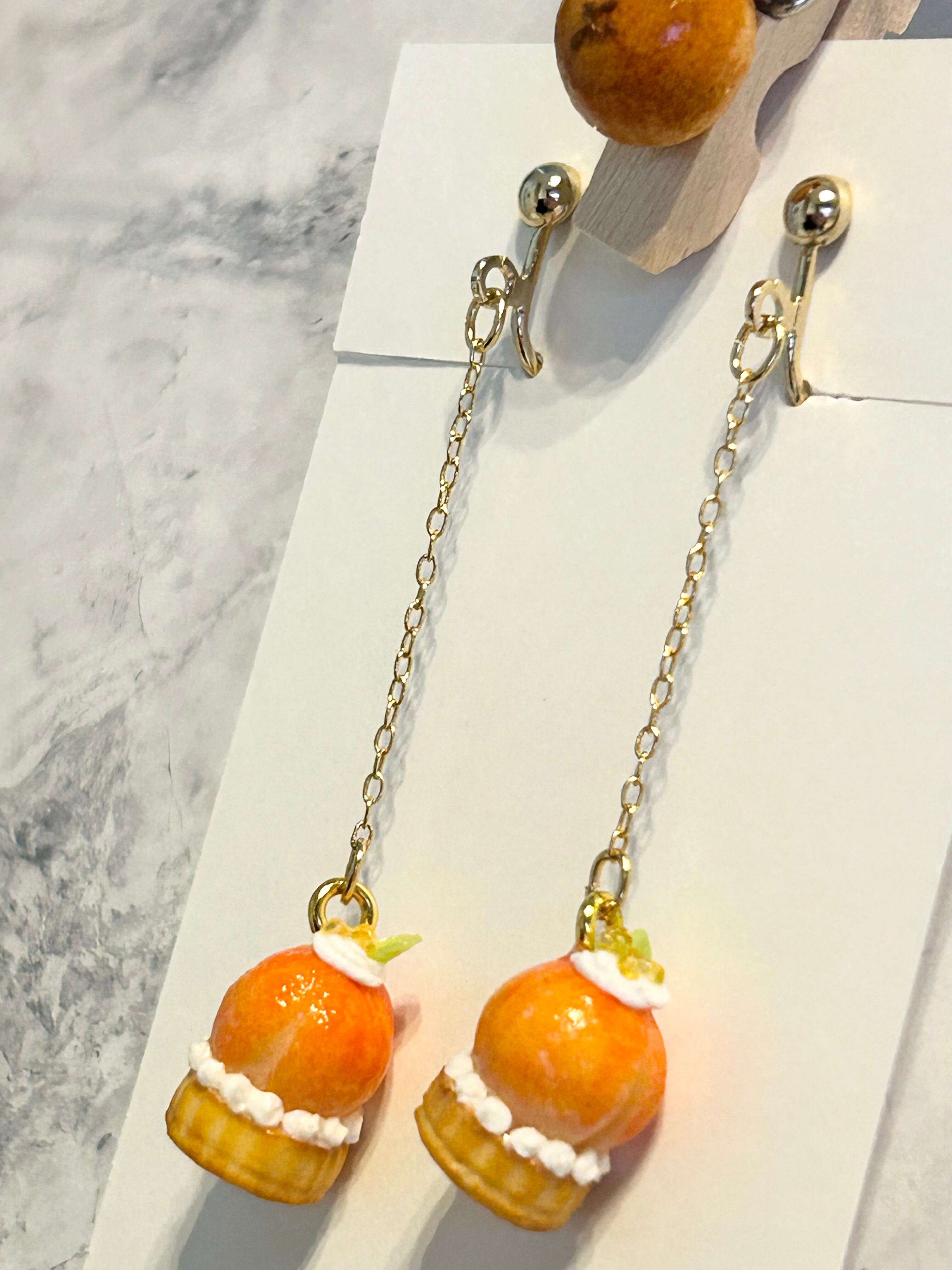 まるごと桃のケーキタルト ミニチュアイヤリング