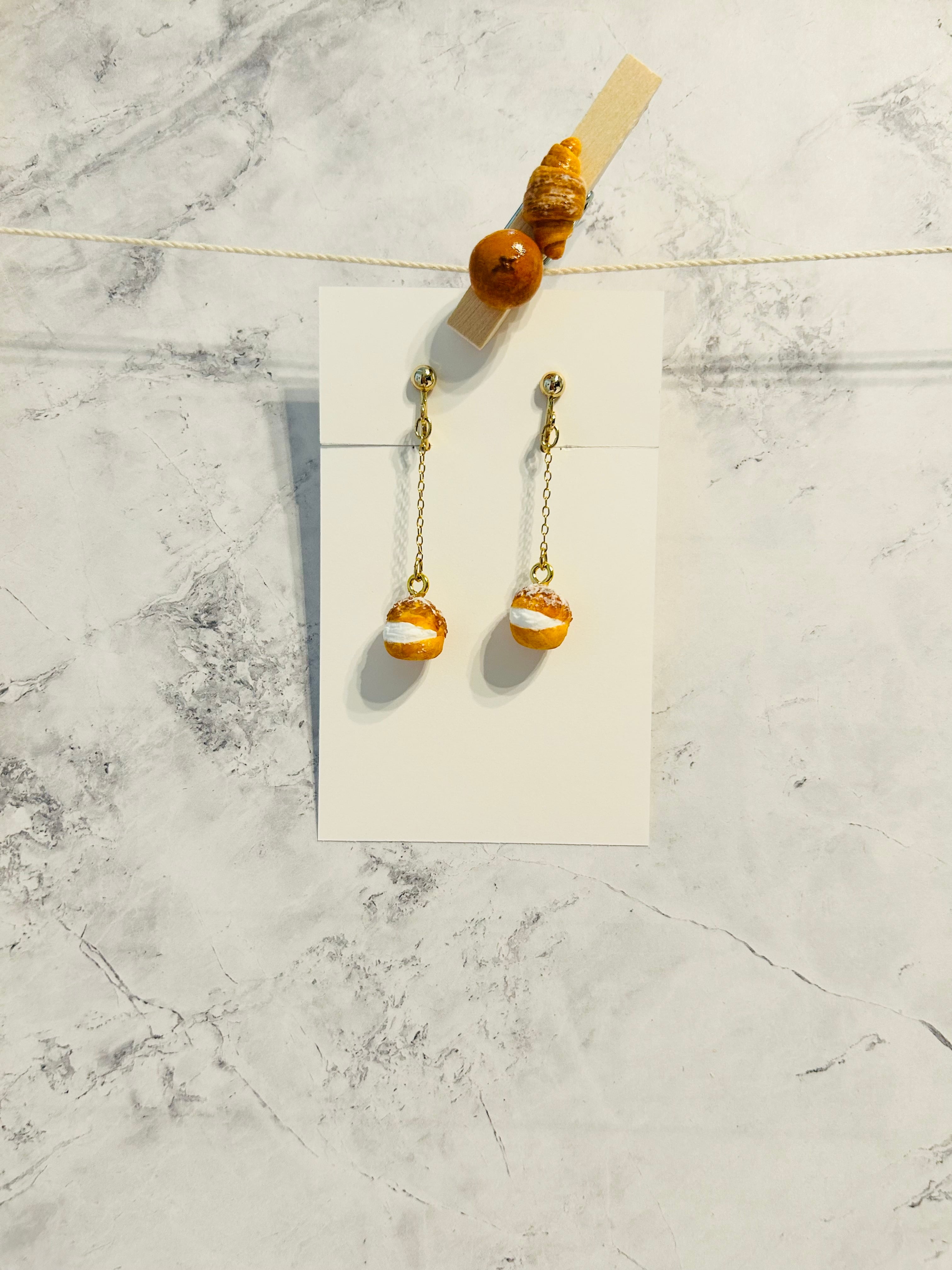 ミニチュアサイズのクッキーシュークリームをモチーフにした、愛らしいイヤリングです。♡
